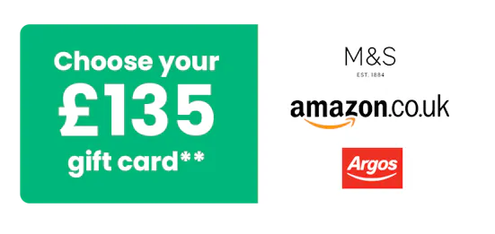 ** British Seniors offer a £135 Gift Card. £135 Gift Card, for new policy holders only, after six successful monthly payments and once your total premiums paid exceeds the value of your Gift Card. This promotion (the “Offer”) entitles you to a single £135 M&S, Argos or Amazon.co.uk Gift Card* sent by email or post. View Full Terms and Conditions here: Gift Card T&C's Restrictions apply, see www.amazon.co.uk/gc-legal.